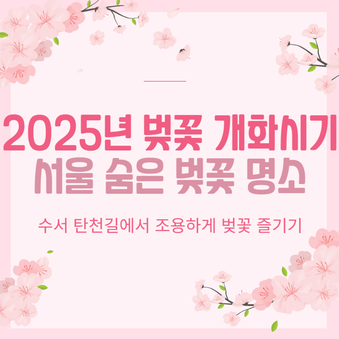 추웠던 겨울이 가고 어느새 따뜻해지더니, 이제는 완연한 봄날씨죠? 여기저기 새싹이 올라오고, 곧 꽃들도 흐드러지게 필 거 같습니다. 따뜻한 봄이면 기다려지는 벚꽃 구경! 올해도 벚꽃 놀이 계획하고 계신가요? 2025년 벚꽃 개화시기 살펴보고, 서울 숨은 벚꽃 명소도 알려 드릴게요. 벚꽃 구경가서 사람 구경만 하고 오시지 말고 숨은 명소에서 벚꽃 즐기고 오세요 🌸